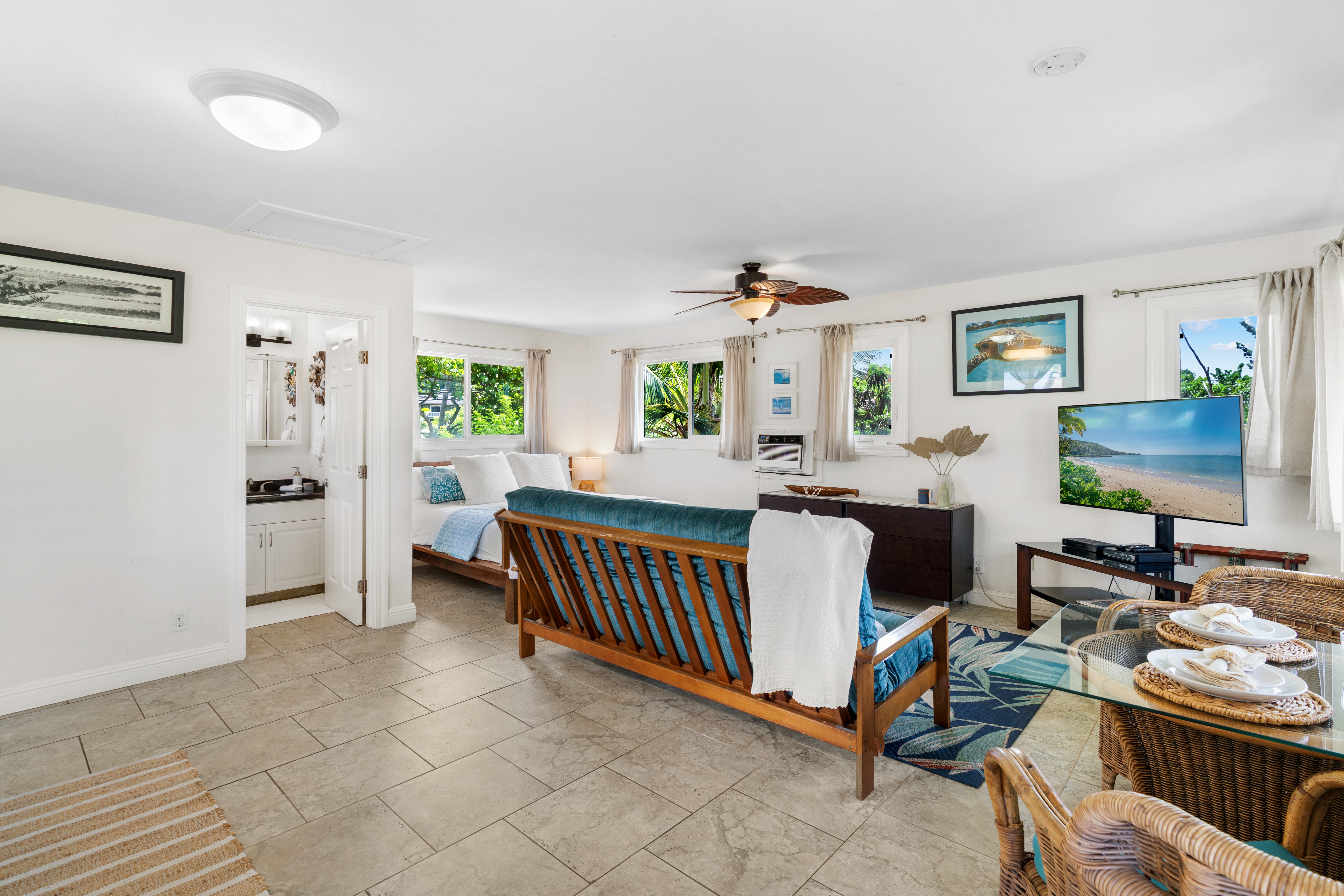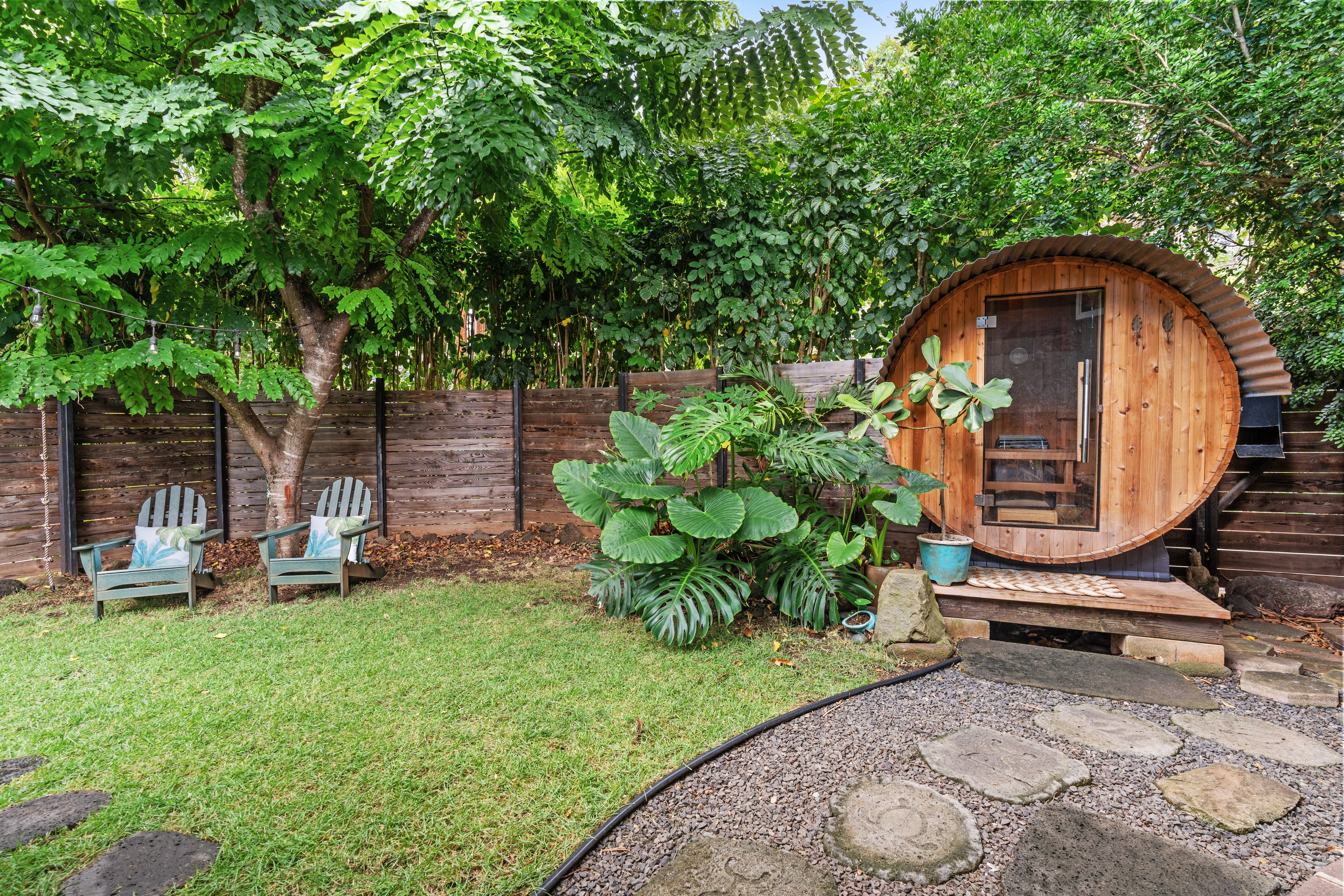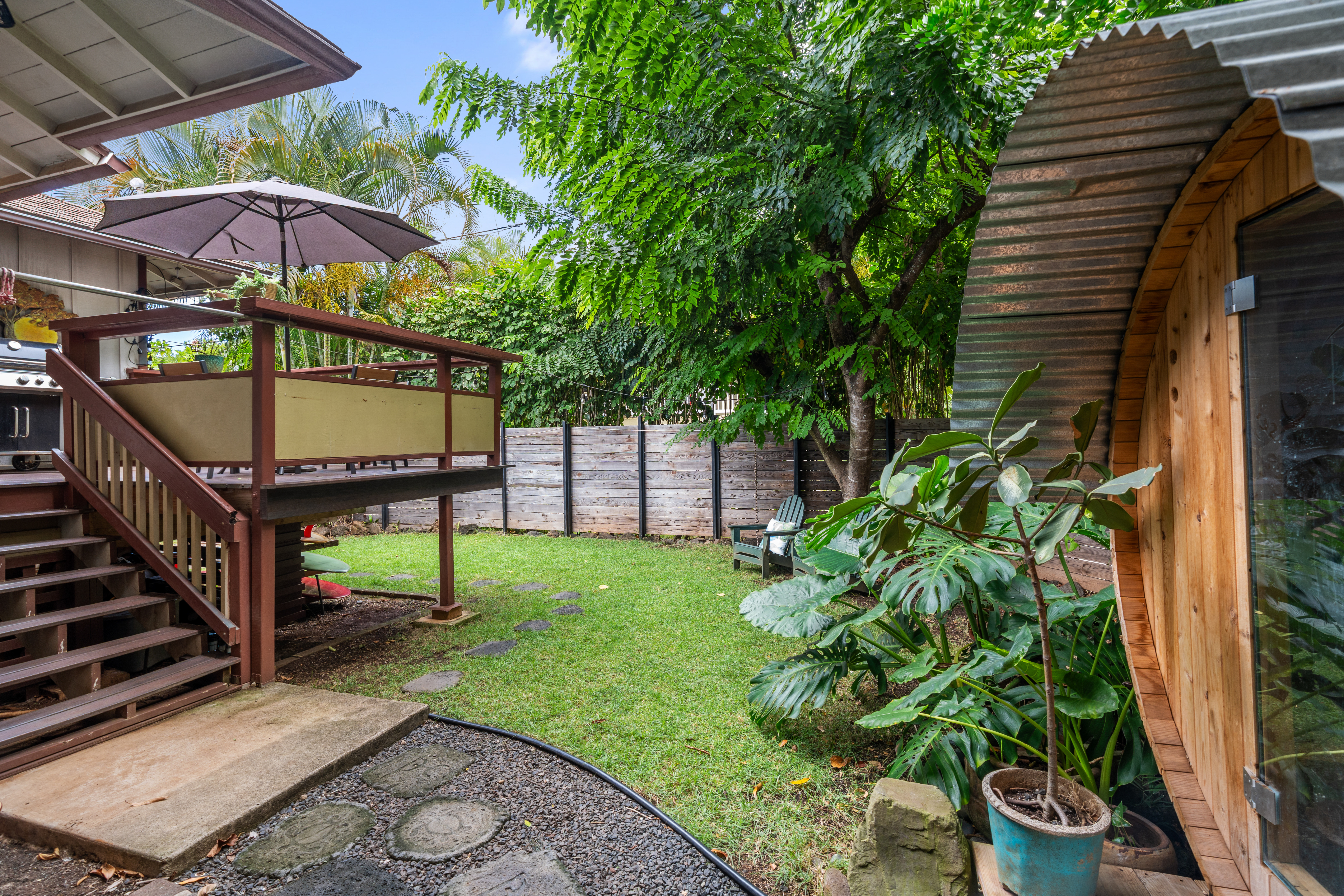 Sherine was born and raised in California, but is forever home in Kailua. With her love of family and ocean, she resides near the beach with her daughter, son-in-law and twin grand-daughters who live in the back Ohana. Yappy Hours and music events are a regular event on the property with friends and clients mingling along with their pups for pupus and wine.