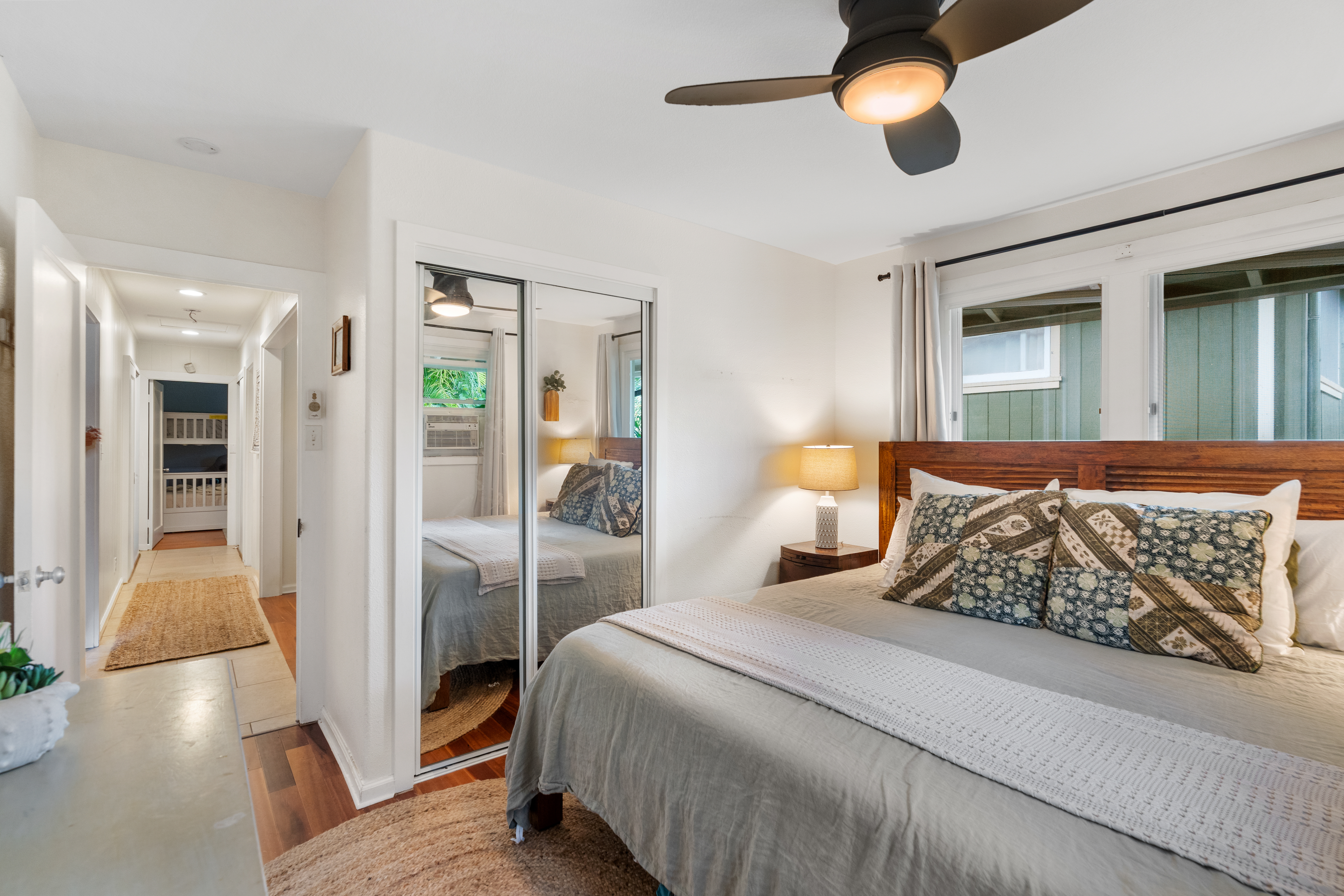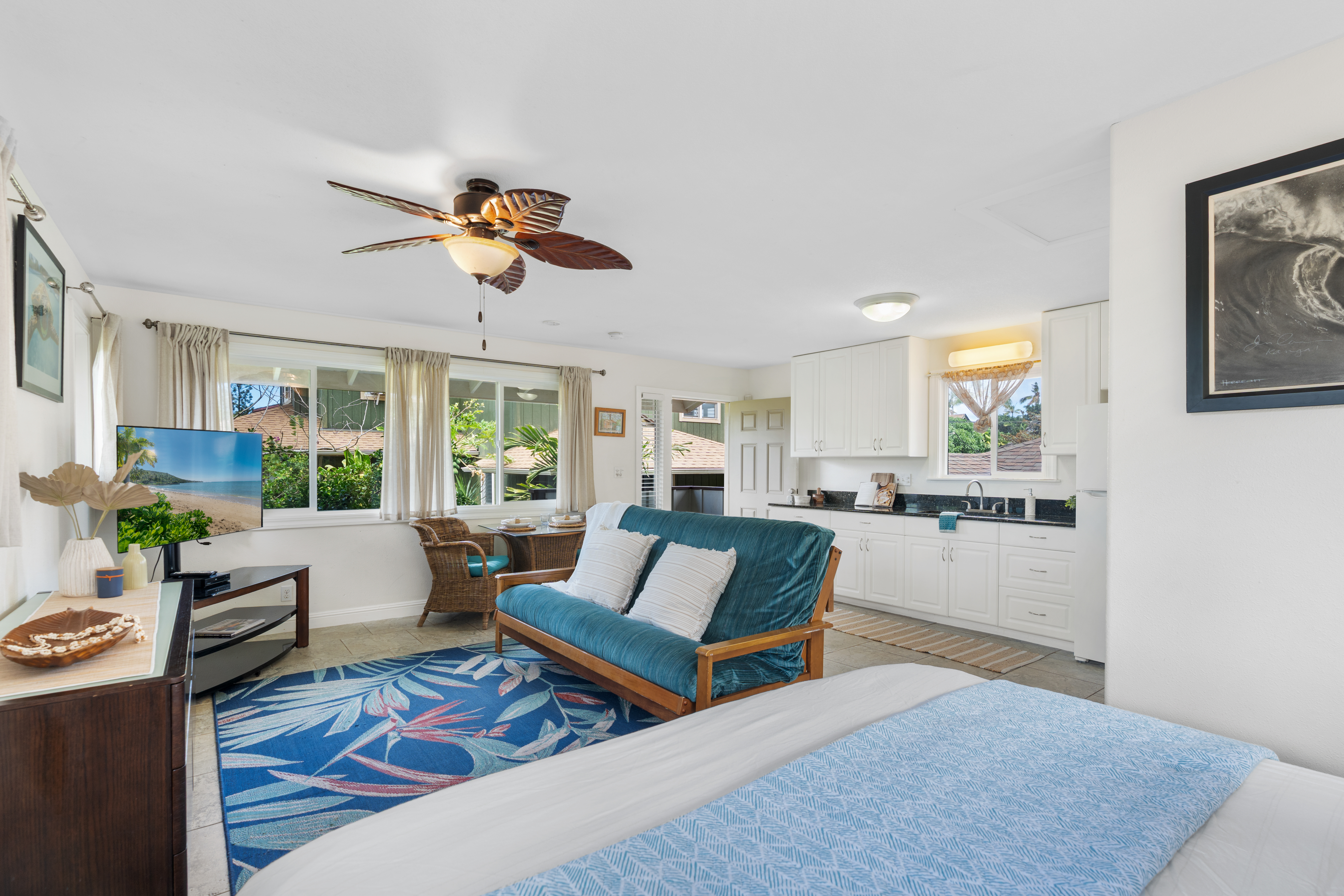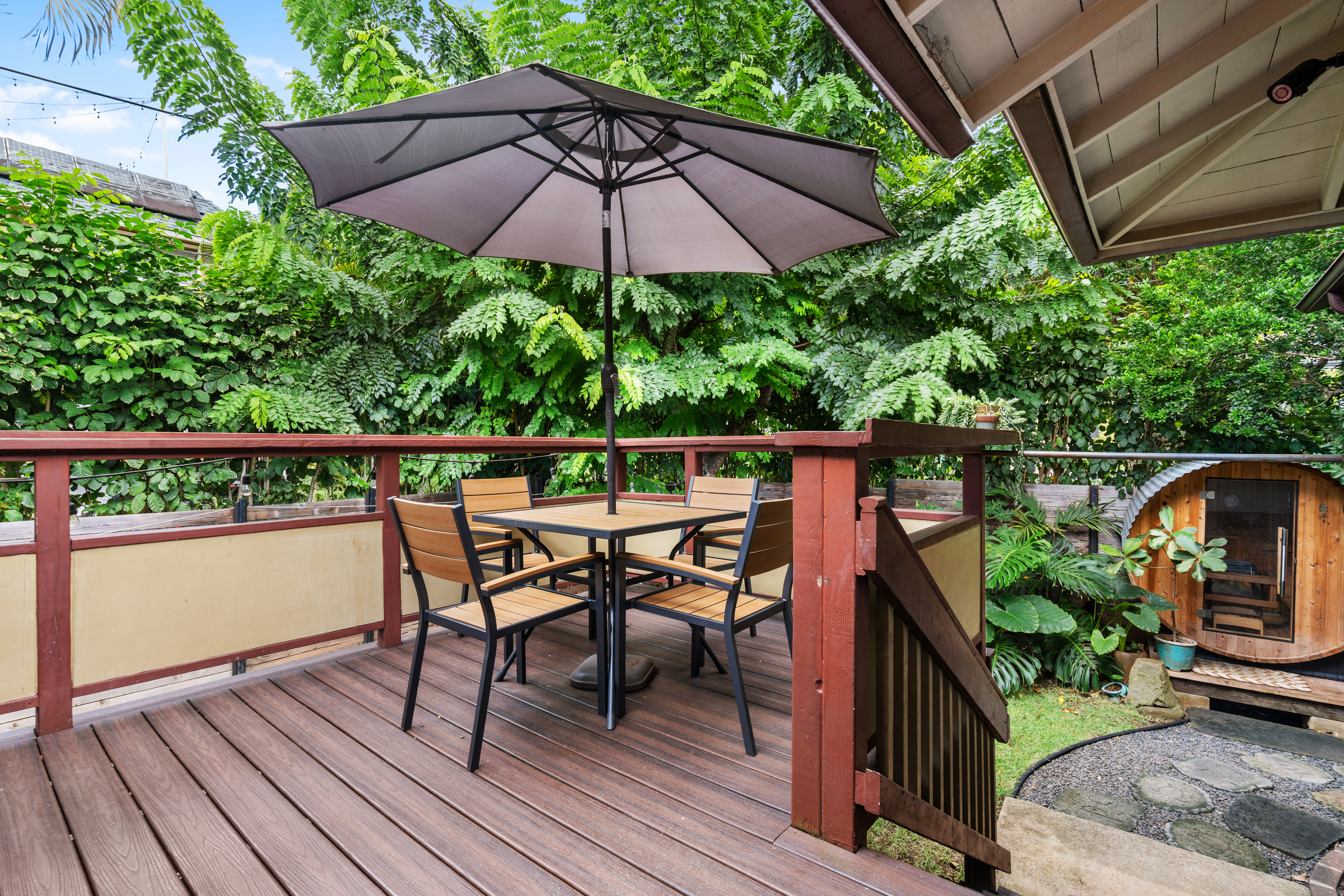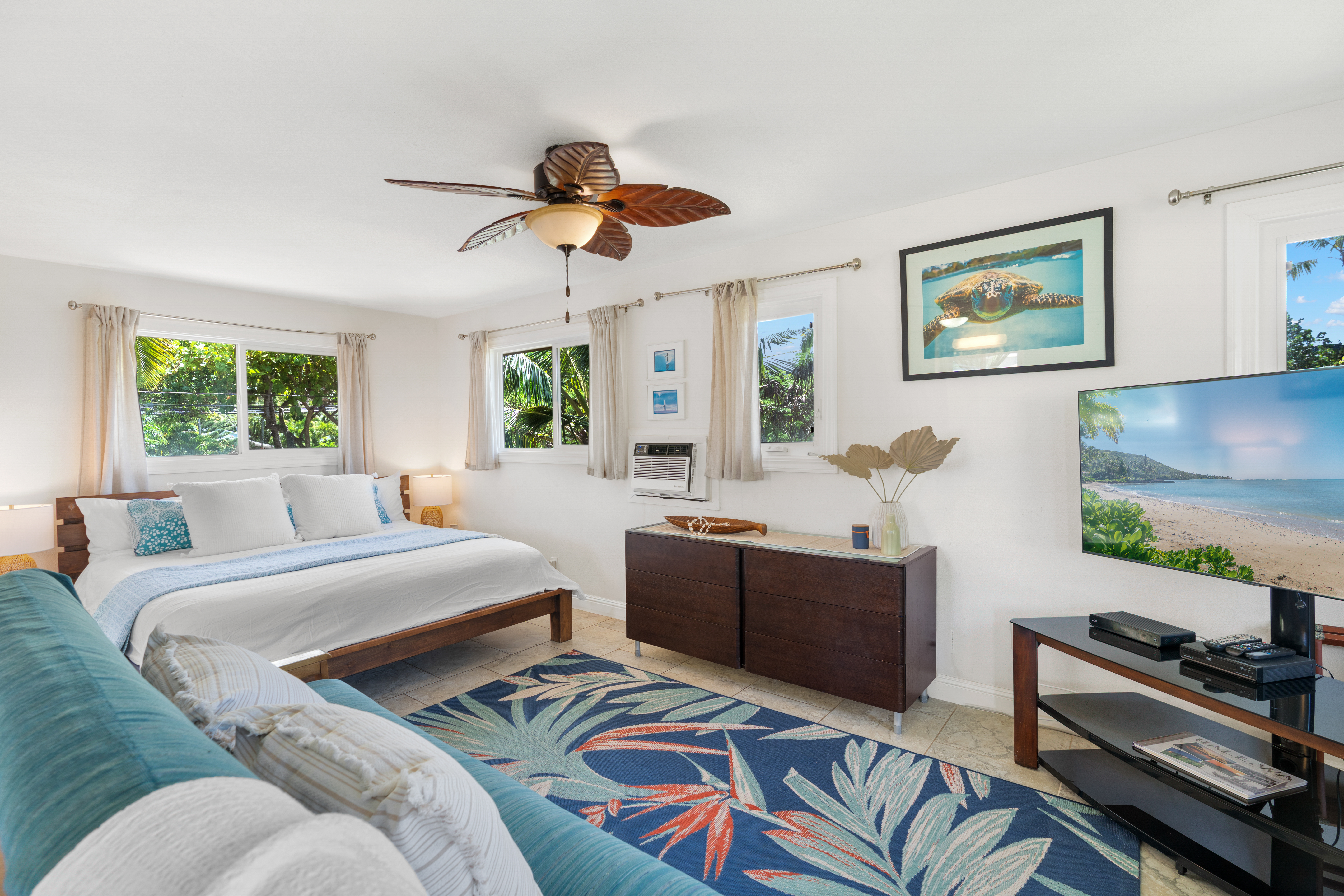 Sherine was born and raised in California, but is forever home in Kailua. With her love of family and ocean, she resides near the beach with her daughter, son-in-law and twin grand-daughters who live in the back Ohana. Yappy Hours and music events are a regular event on the property with friends and clients mingling along with their pups for pupus and wine.